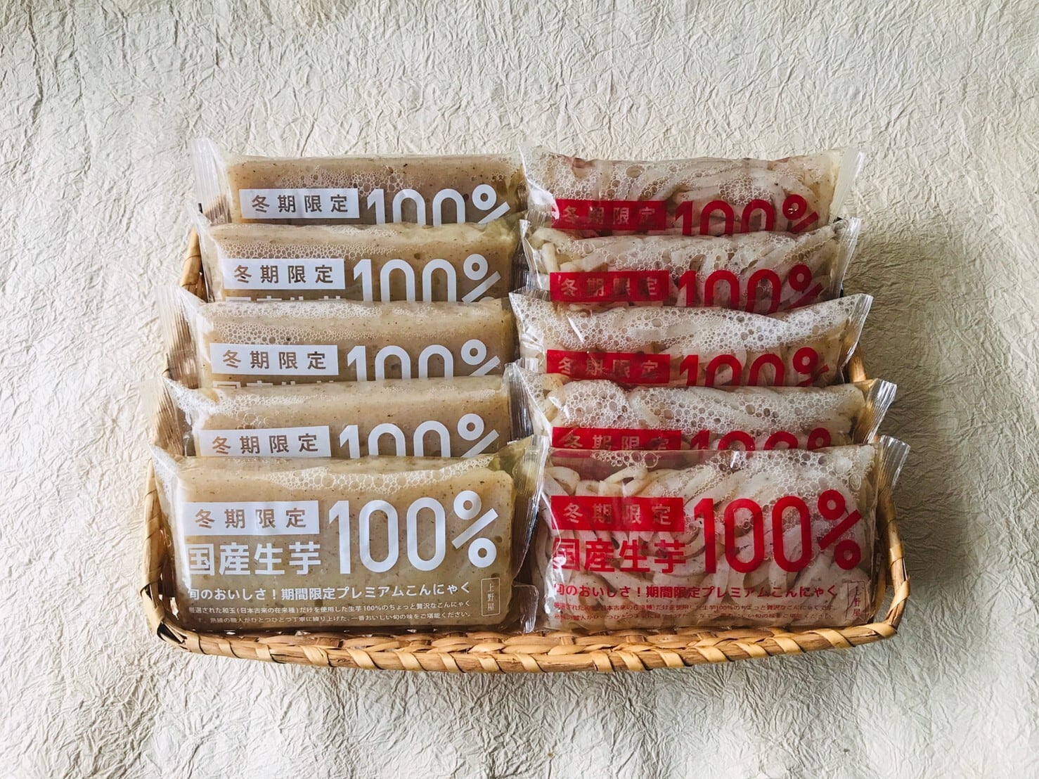 そういう思いからこちらの冬期限定国産生芋100%のこんにゃくが生まれました。最もおいしい時期にさらに品種・製法にもこだわることで、よりこんにゃくの『旬』を感じてもらえるこの冬おすすめの自信作です。